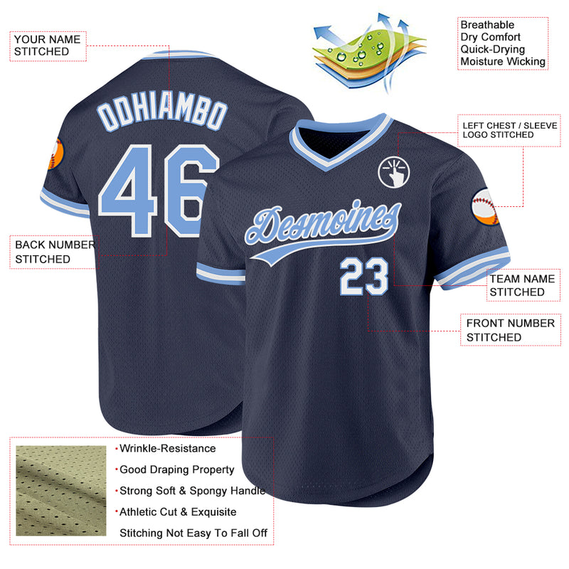 Custom Navy Light Blue-White Authentic Throwback Baseball Jersey