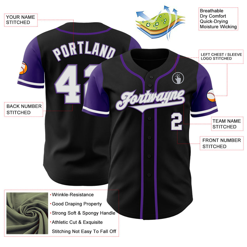 Custom Black White-Purple Authentic Two Tone Baseball Jersey