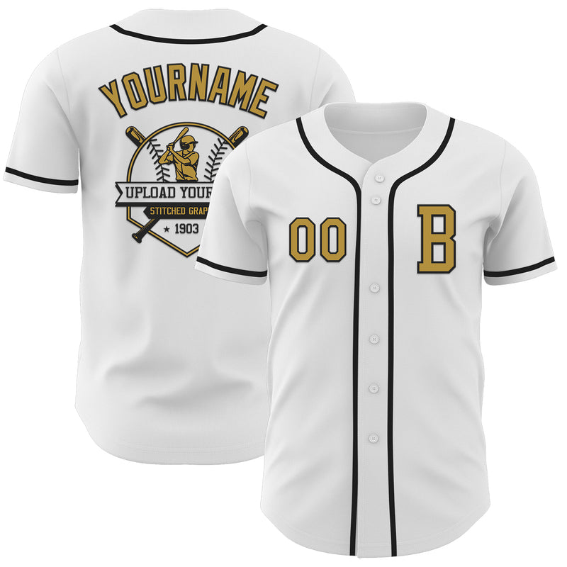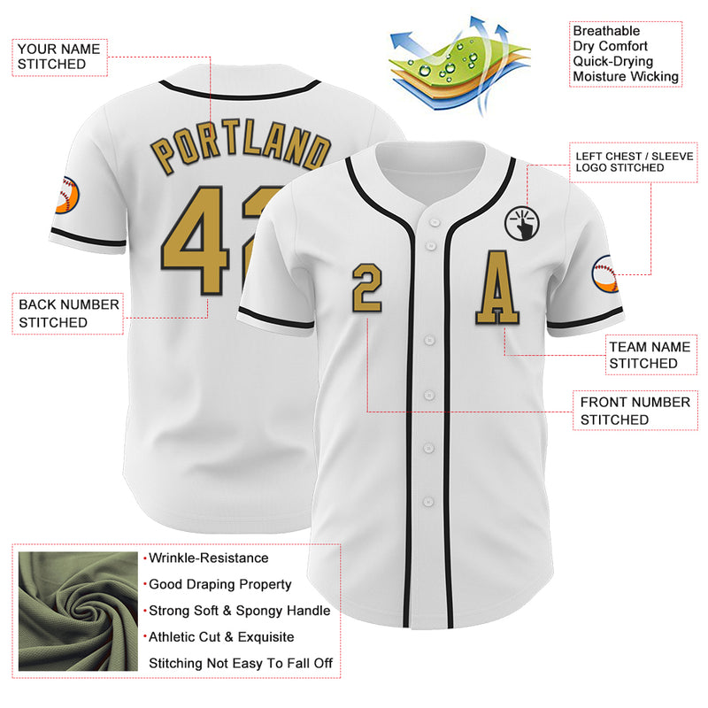 Custom White Old Gold-Black Authentic Baseball Jersey