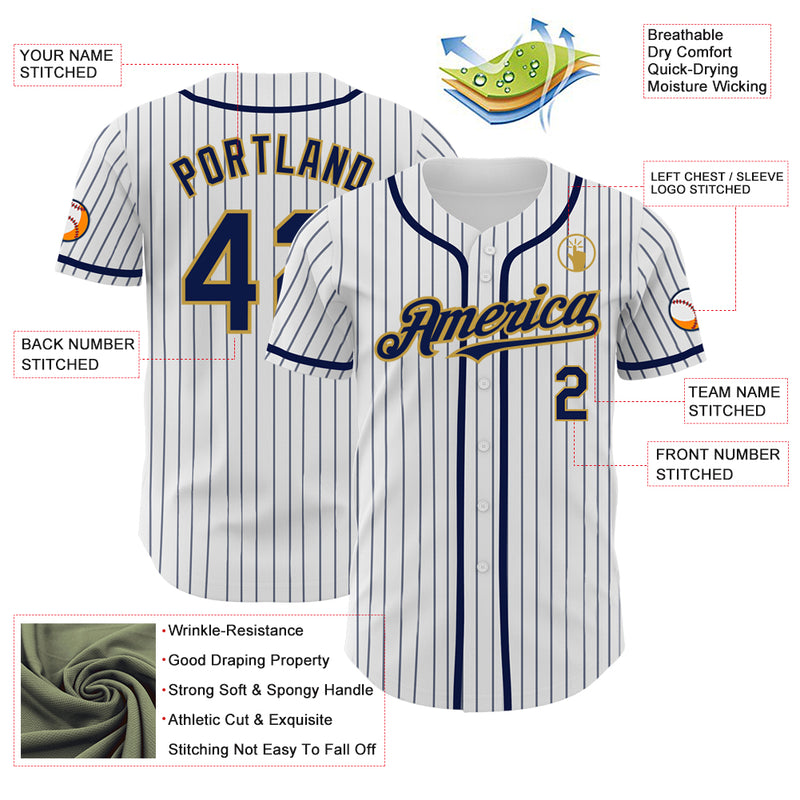 Custom White Navy Pinstripe Old Gold Authentic Baseball Jersey