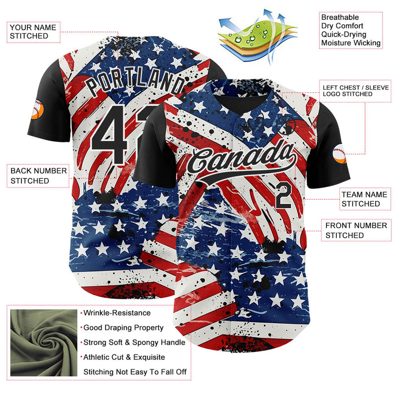 Custom White Black Royal-Red 3D American Flag Patriotic Authentic Baseball Jersey
