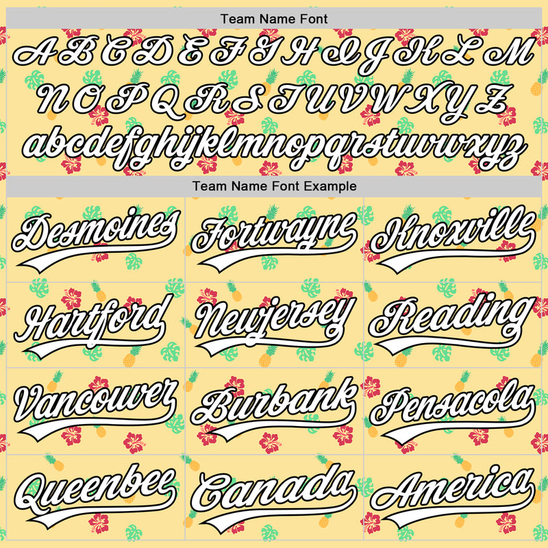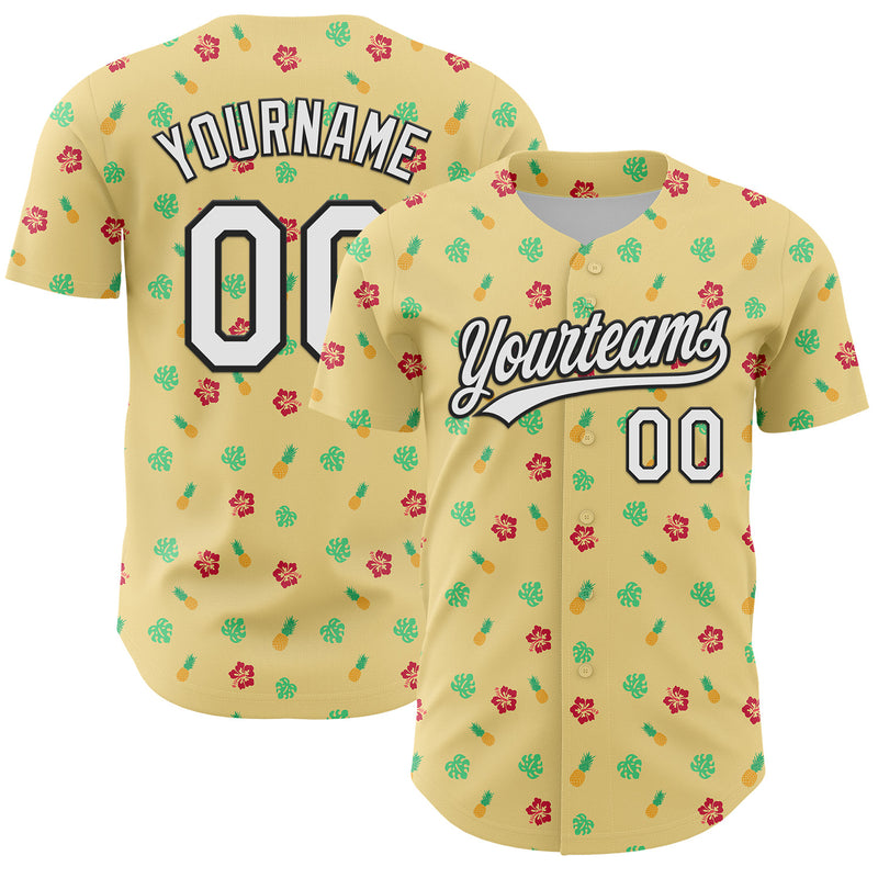 Custom Yellow White-Black 3D Hawaii Tropical Palm Leaves And Fruit Pineapple Authentic Baseball Jersey