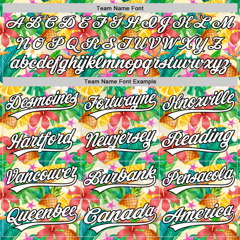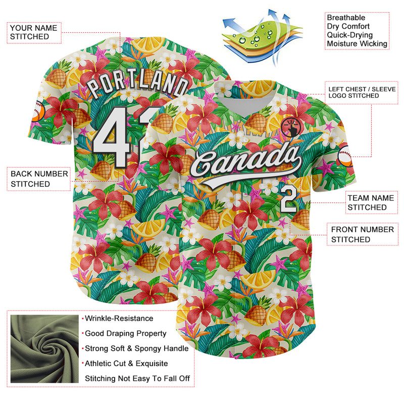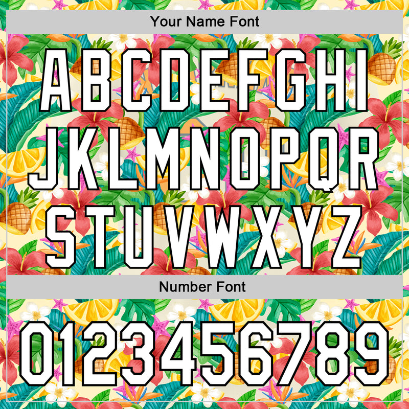 Custom Yellow White-Black 3D Hawaii Tropical Palm Leaves Flower And Fruit Pineapple Authentic Baseball Jersey