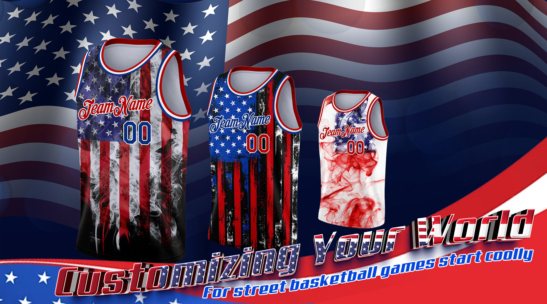 CUSTOM USA FLAG BASKETBALL UNIFORMS & EMBROIDER LOGO/ NAME/ NUMBER