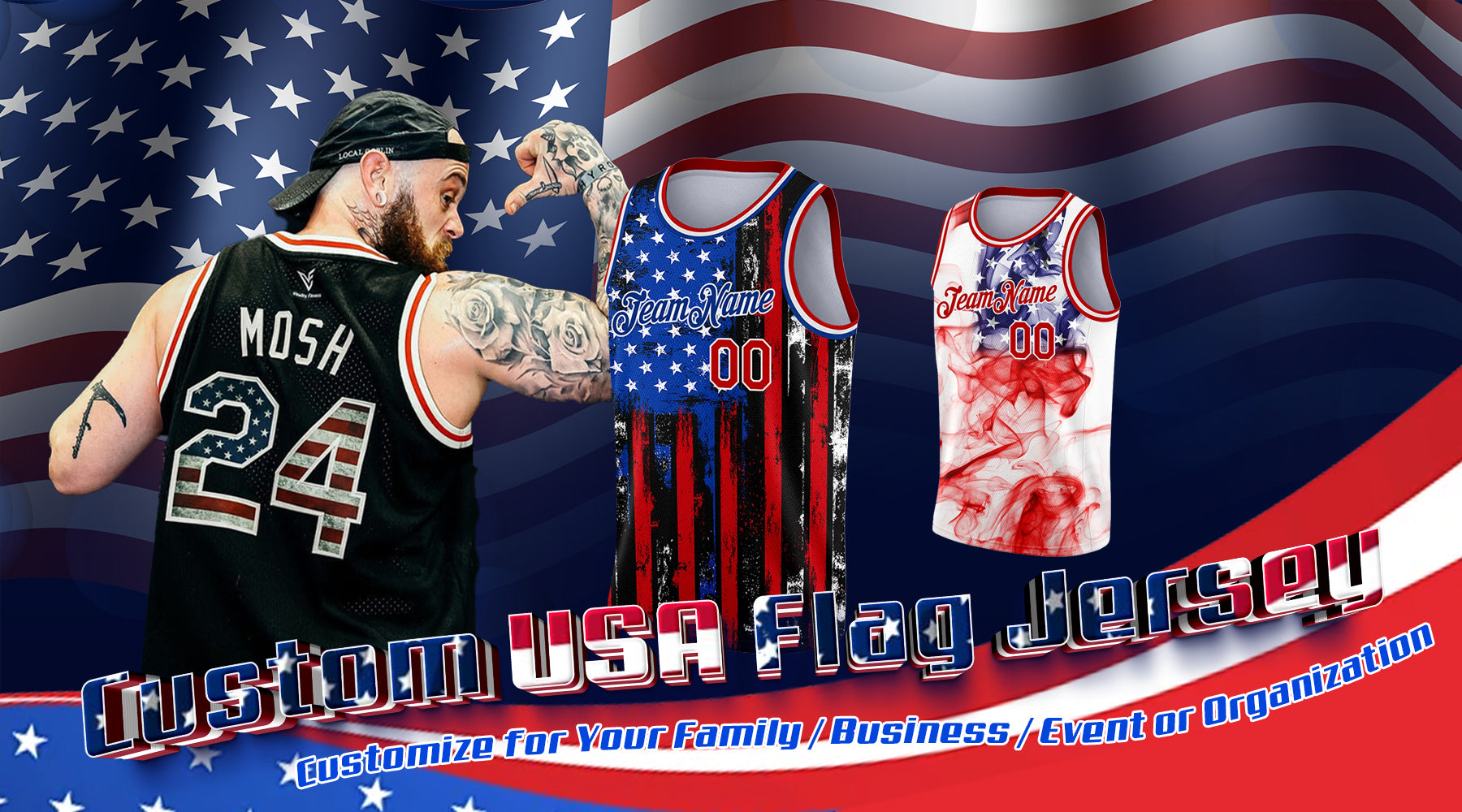 CUSTOM USA FLAG BASKETBALL UNIFORMS & EMBROIDER LOGO/ NAME/ NUMBER