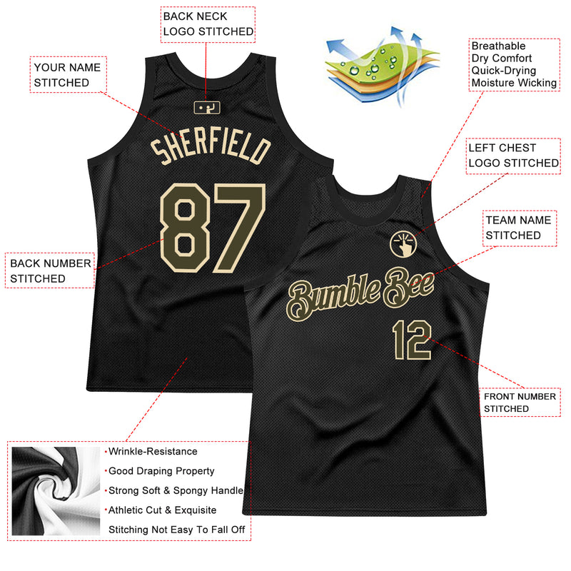 Custom Black Olive-Cream Authentic Throwback Basketball Jersey