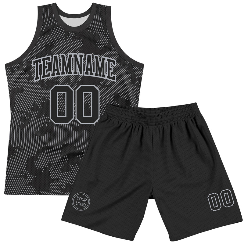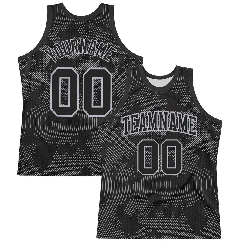 Custom Black Gray Curve Lines Round Neck Sublimation Basketball Suit Jersey