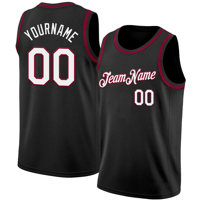 Custom Black White-Maroon Authentic Basketball Jersey