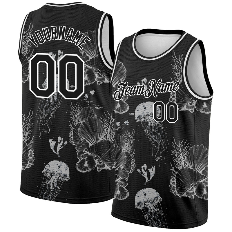 Custom Black White 3D Pattern Design Jellyfishes And Seashells Authentic Basketball Jersey