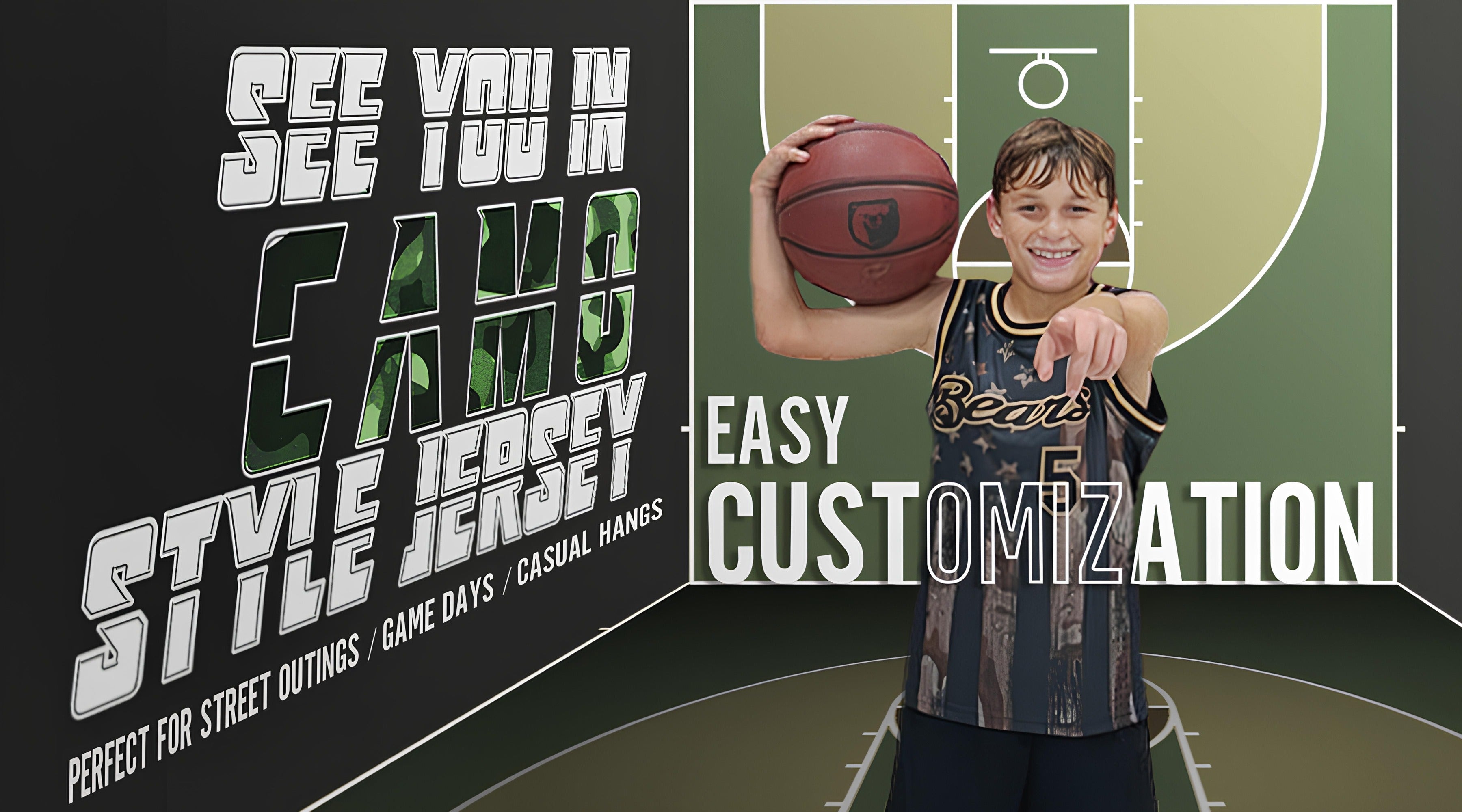 CUSTOM CAMO BASKETBALL UNIFORMS & EMBROIDER LOGO/ NAME/ NUMBER