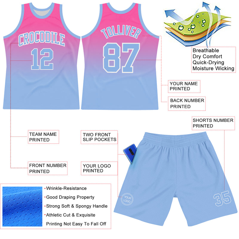 Custom Pink Light Blue-White Fade Fashion Round Neck Sublimation Basketball Suit Jersey