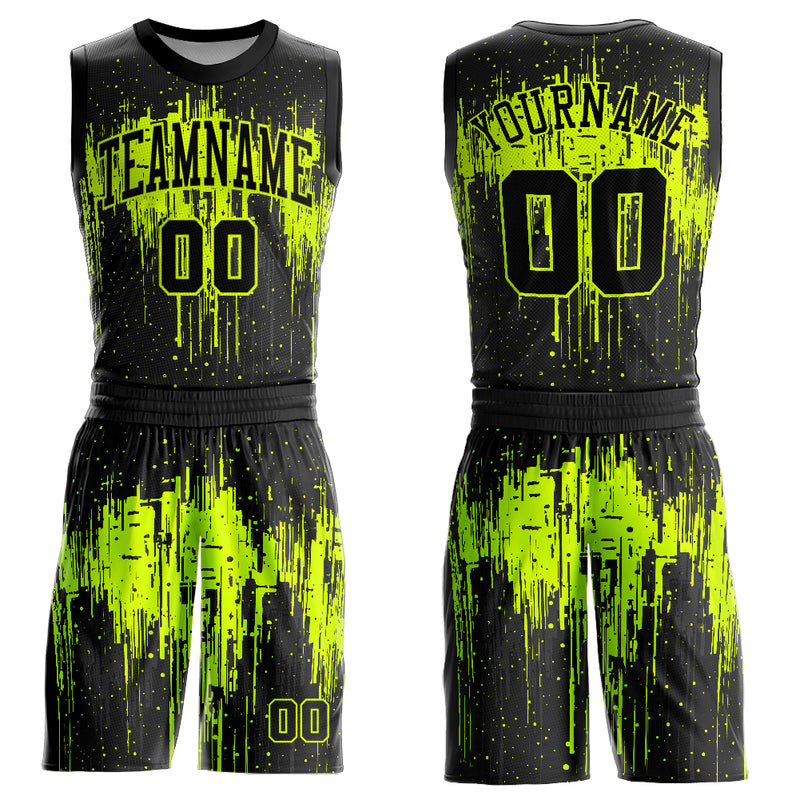 Custom Black Neon Green Round Neck Sublimation Basketball Suit Jersey