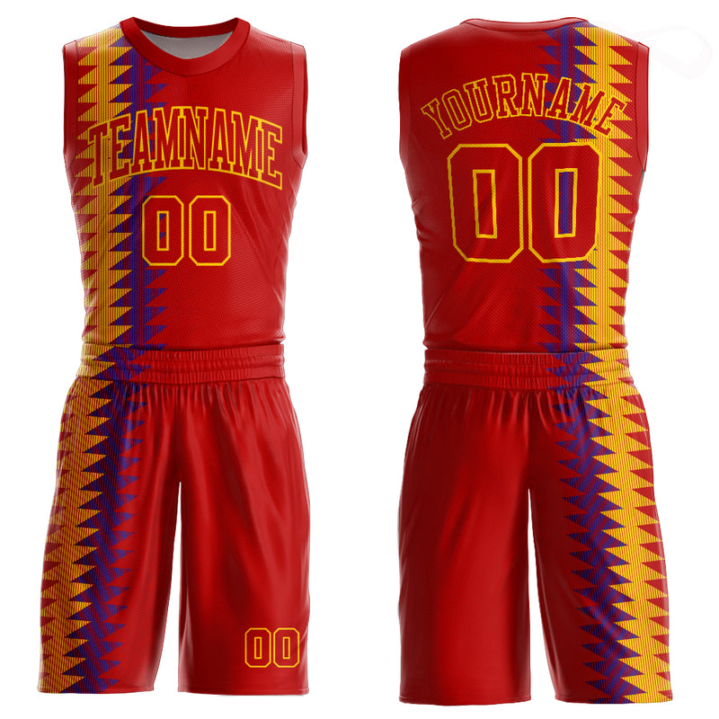 Custom Red Red-Gold Round Neck Sublimation Basketball Suit Jersey