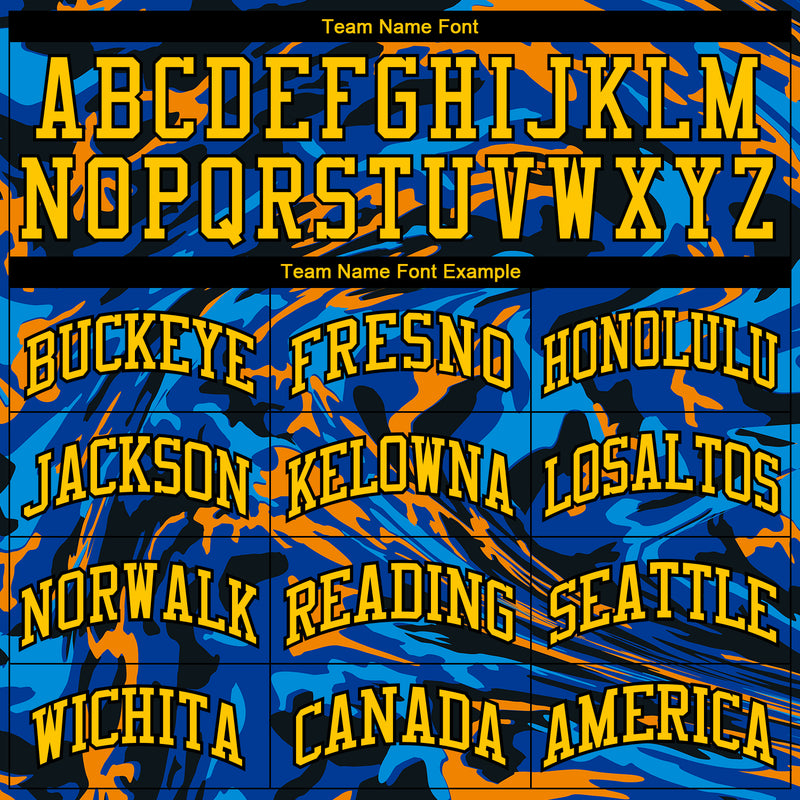 Custom Figure Gold-Royal Round Neck Sublimation Basketball Suit Jersey