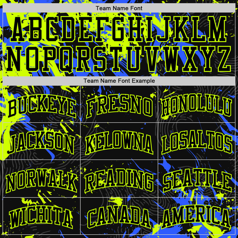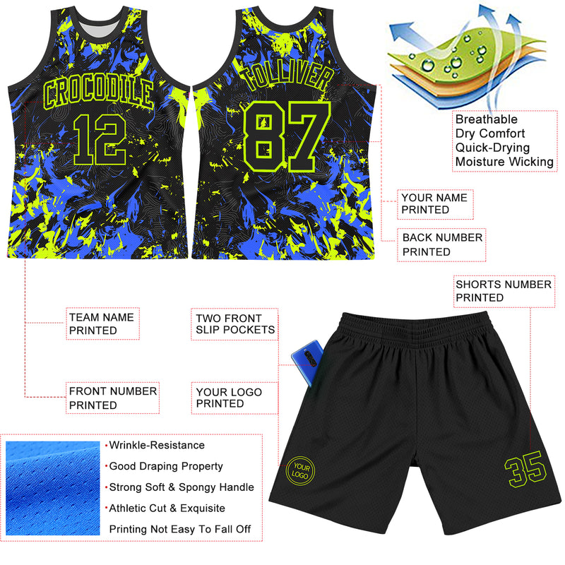 Custom Black Neon Green-Royal Splash Round Neck Sublimation Basketball Suit Jersey