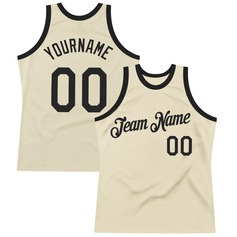 Custom Cream Black Authentic Throwback Basketball Jersey
