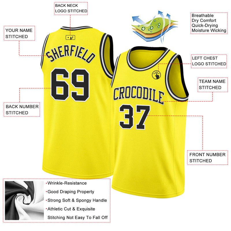 Custom Light Yellow Black-White Authentic Basketball Jersey