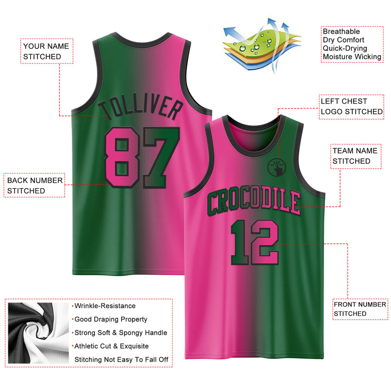 Custom Kelly Green Pink-Black Authentic Gradient Fashion Basketball Jersey