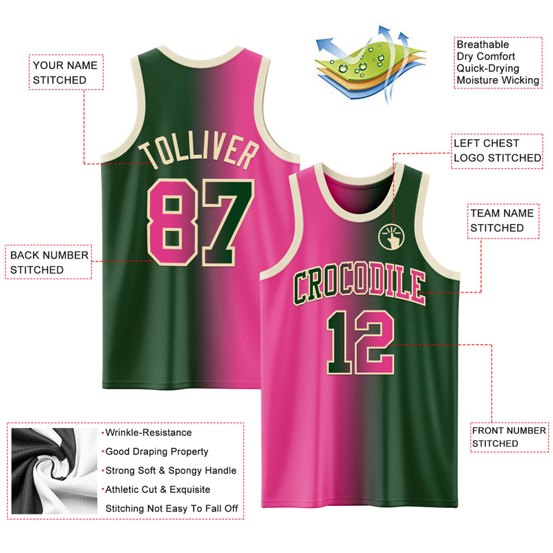 Custom Green Pink-Cream Authentic Gradient Fashion Basketball Jersey