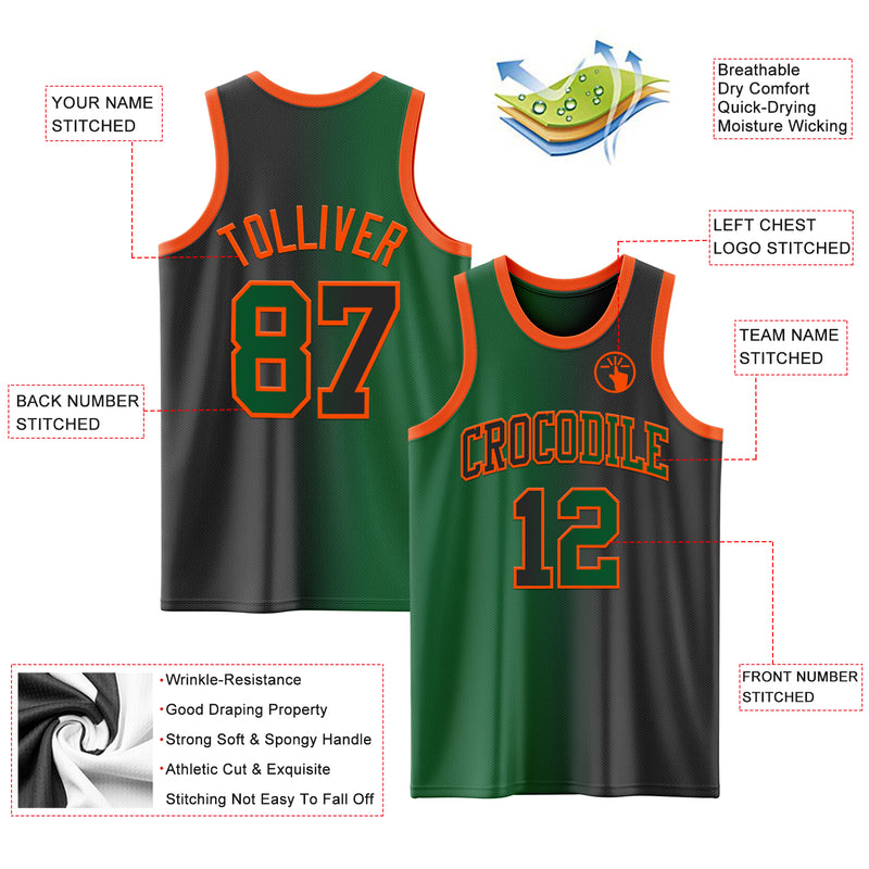 Custom Black Kelly Green-Orange Authentic Gradient Fashion Basketball Jersey
