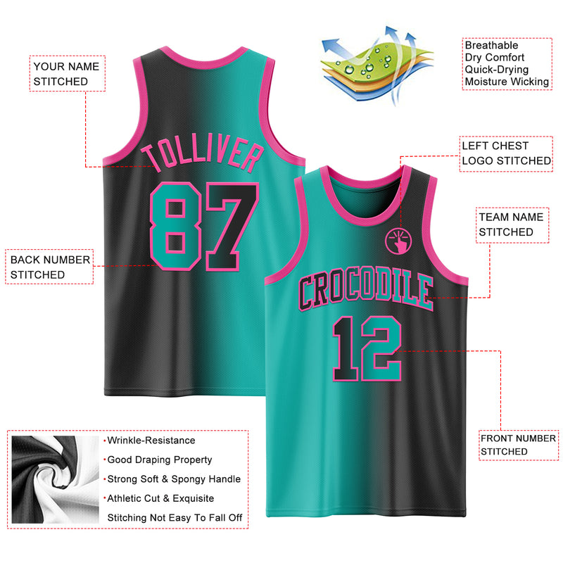 Custom Black Aqua-Pink Authentic Gradient Fashion Basketball Jersey
