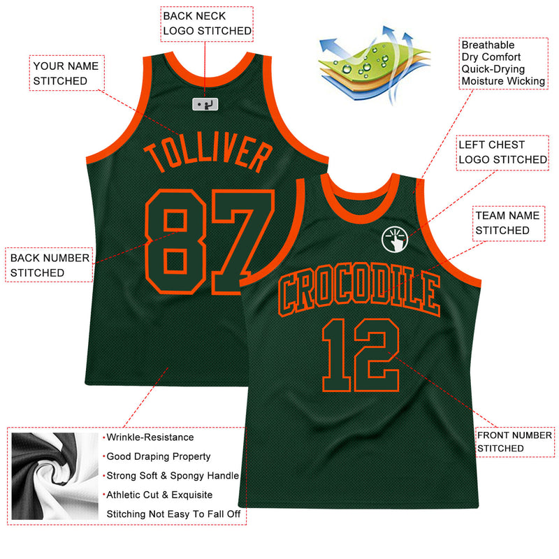 Custom Hunter Green Green-Orange Authentic Throwback Basketball Jersey