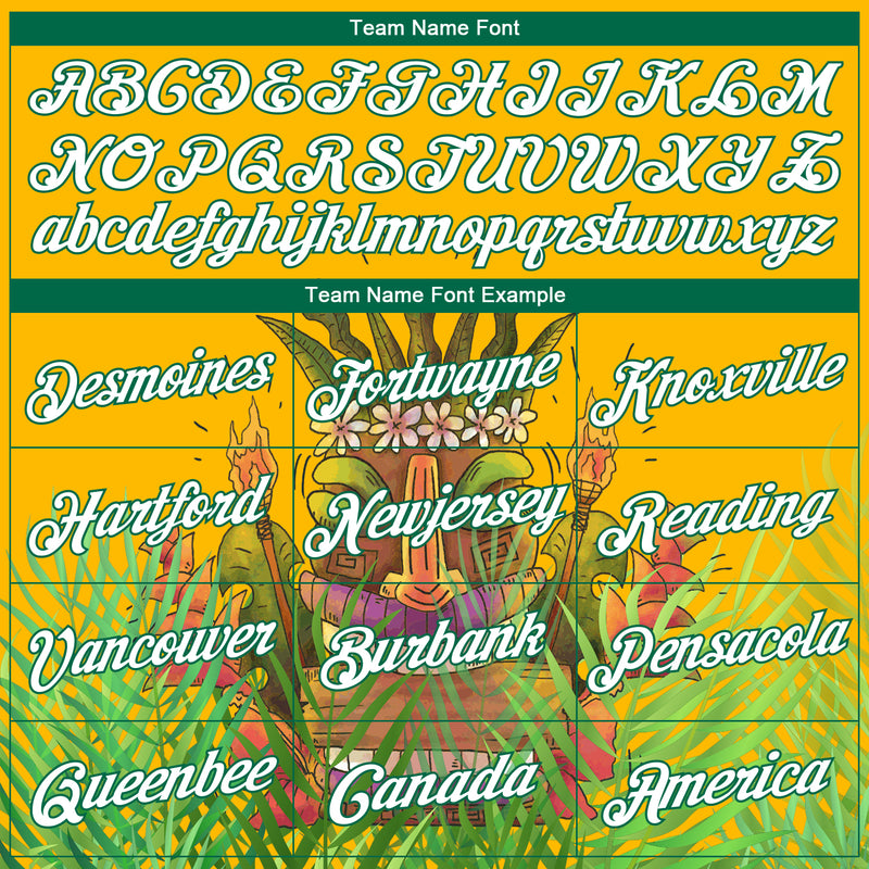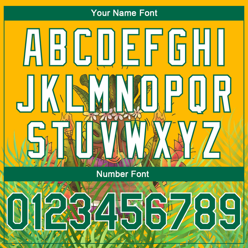 Custom Gold Kelly Green-White 3D Pattern Cartoon Tropical Hawaii Rainforest Authentic Basketball Jersey