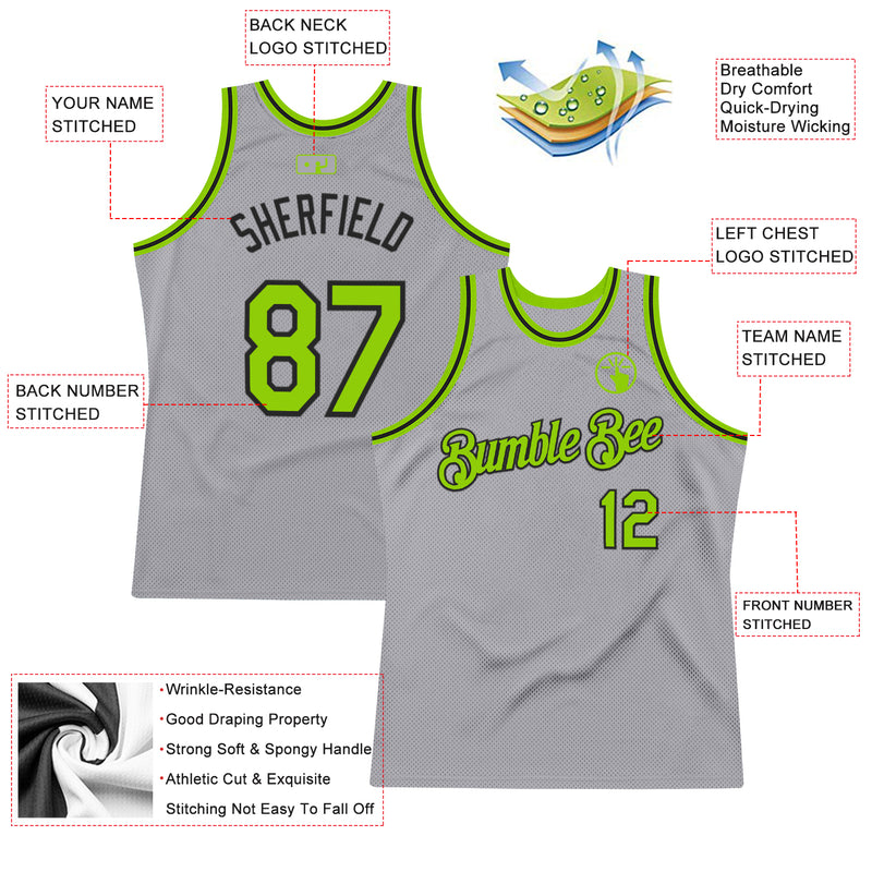 Custom Gray Neon Green-Black Authentic Throwback Basketball Jersey