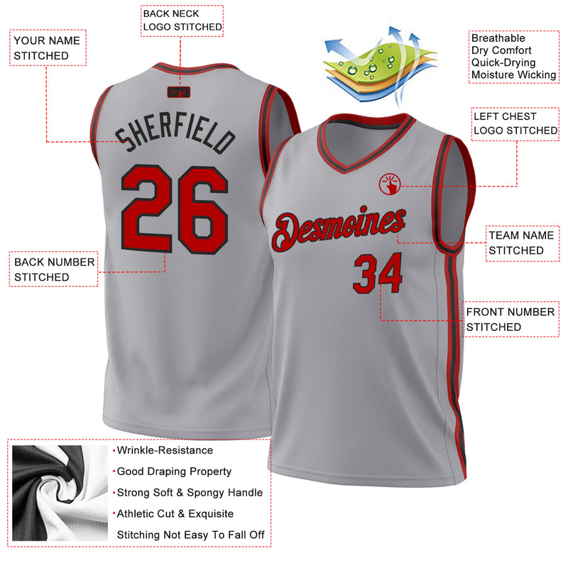 Custom Gray Red-Black Authentic Throwback Basketball Jersey