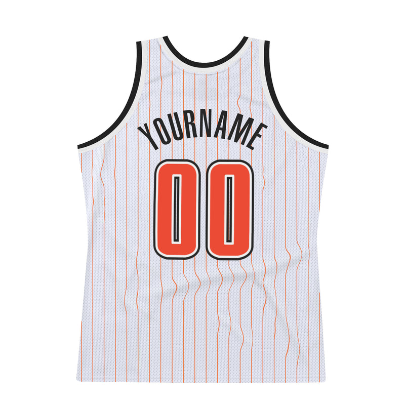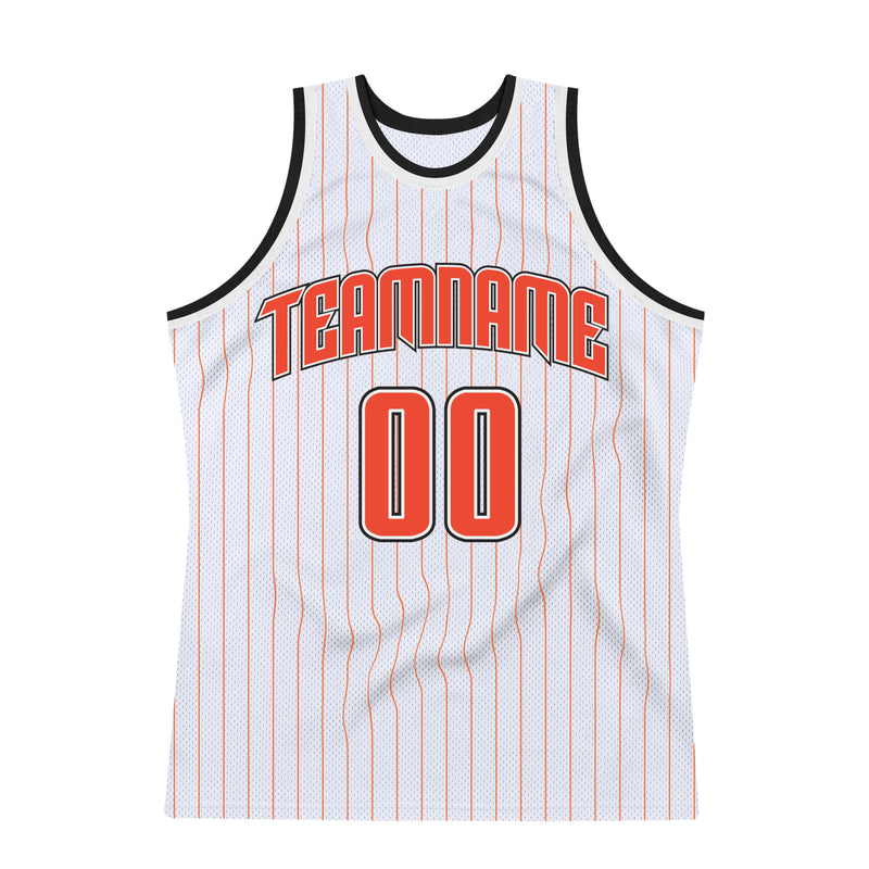 Custom White Orange Pinstripe Orange-Black Authentic Basketball Jersey