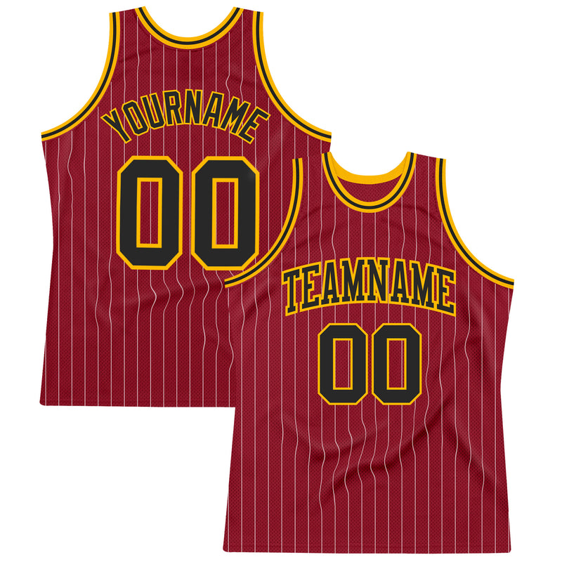 Custom Maroon White Pinstripe Black-Gold Authentic Basketball Jersey