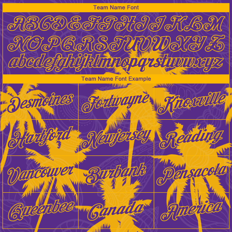 Custom Purple Gold 3D Pattern Hawaii Palm Trees Authentic Basketball Jersey