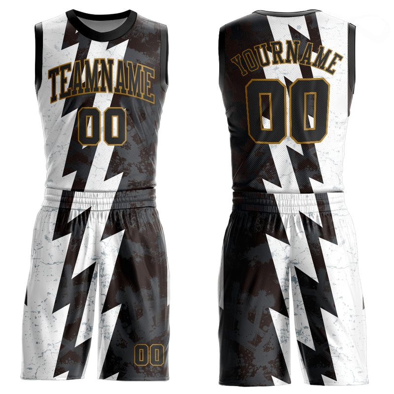 Custom White Black-Old Gold Round Neck Sublimation Basketball Suit Jersey