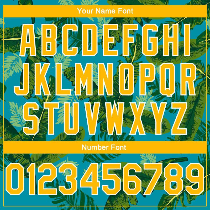 Custom Teal Gold-White 3D Pattern Tropical Hawaii Leaves Authentic Basketball Jersey