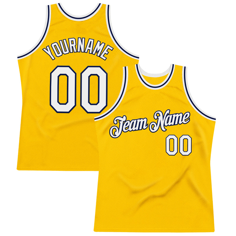 Custom Gold White-Navy Authentic Throwback Basketball Jersey
