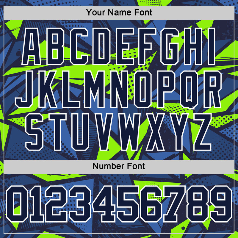 Custom Navy Neon Green-White Geometric Shape Round Neck Sublimation Basketball Suit Jersey