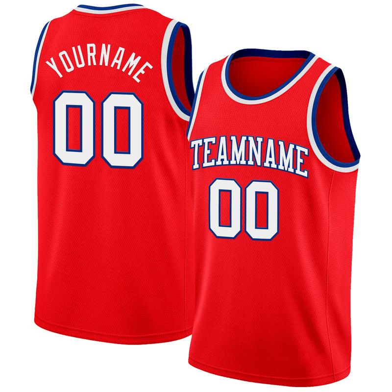 Custom Fire Red White-Royal Authentic Basketball Jersey