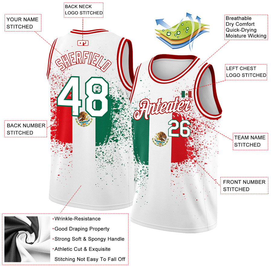 CUSTOM MEXICAN FLAG BASKETBALL UNIFORMS & EMBROIDER LOGO/ NAME/ NUMBER