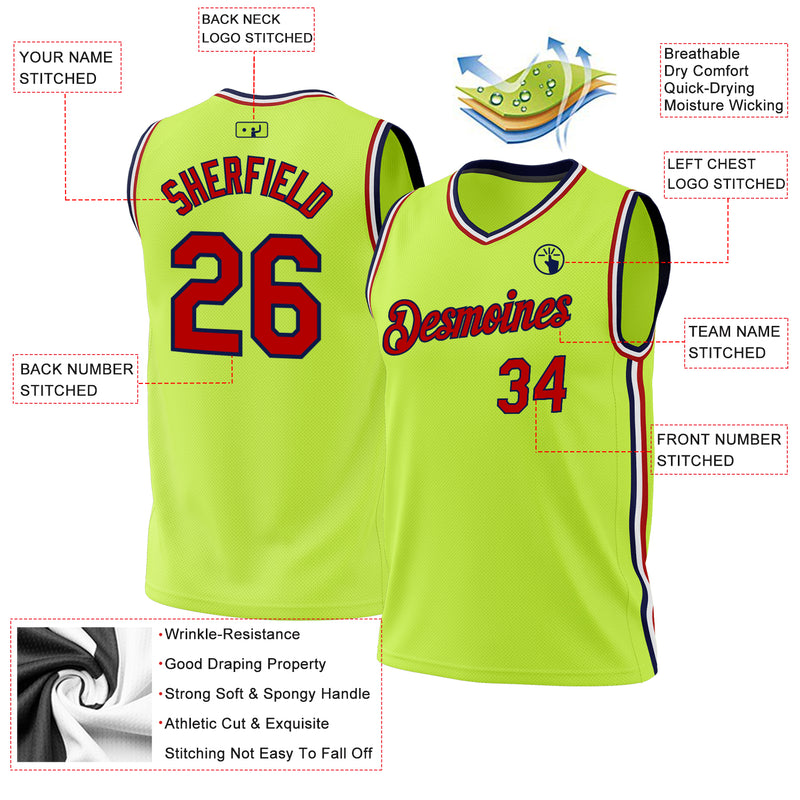 Custom Neon Green Red-Navy Authentic Throwback Basketball Jersey