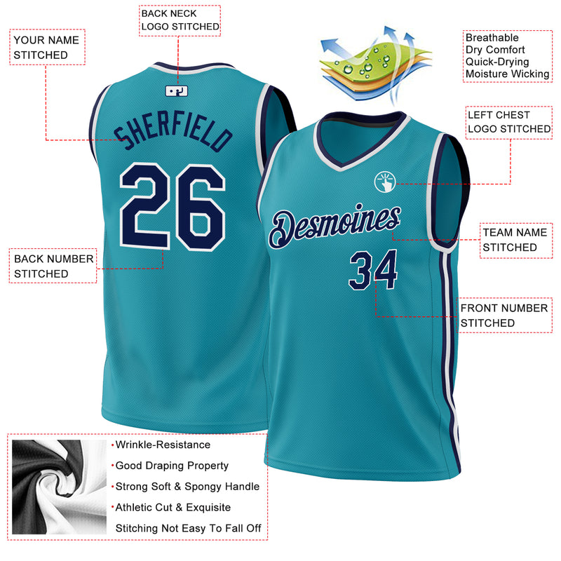 Custom Teal Navy-White Authentic Throwback Basketball Jersey