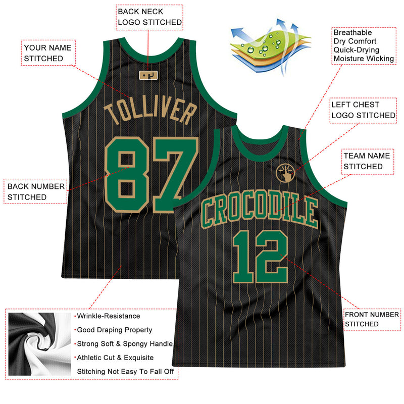 Custom Black Old Gold Pinstripe Kelly Green-Old Gold Authentic Basketball Jersey