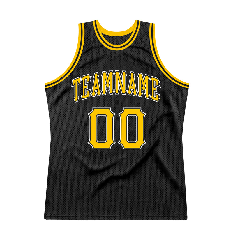 Custom Black Gold-White Authentic Throwback Basketball Jersey