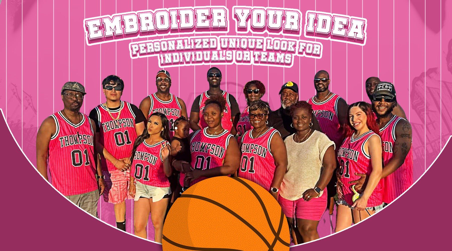 CUSTOM PINK PINSTRIPE DESIGN BASKETBALL UNIFORMS & EMBROIDER LOGO/NAME/ NUMBER