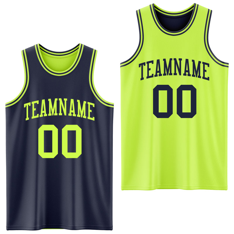Custom Reversible Navy Neon Green Double Side Sublimation Basketball Suit Jersey