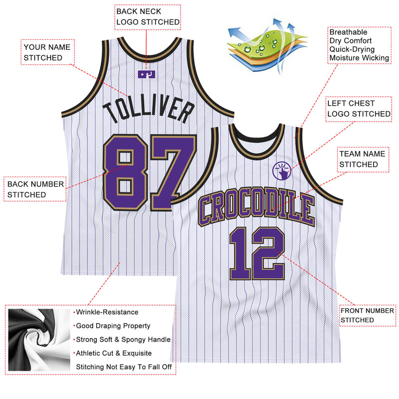 Custom White Purple Pinstripe Purple Old Gold-Black Authentic Basketball Jersey