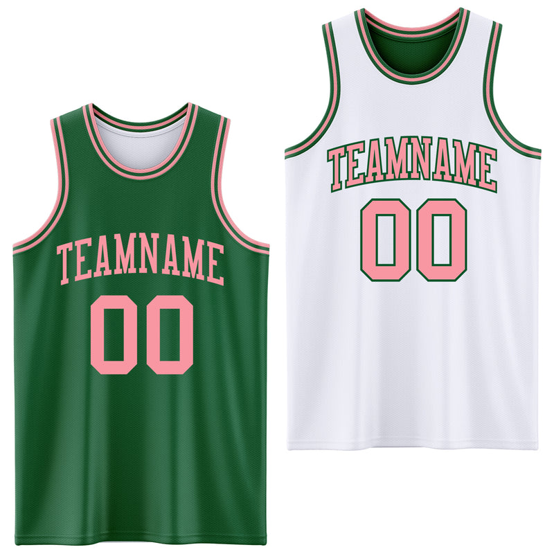 Custom Reversible Kelly Green Medium Pink Double Side Sublimation Basketball Suit Jersey