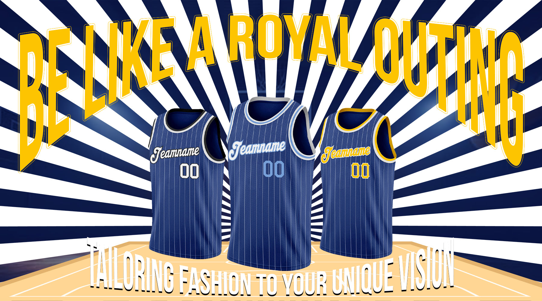 CUSTOM ROYAL BLUE PINSTRIPE BASKETBALL UNIFORMS & EMBROIDER LOGO / NAME/ NUMBER