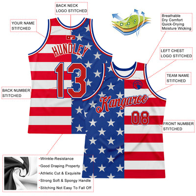Custom Royal Red-White 3D Pattern Design American Flag Authentic Basketball Jersey