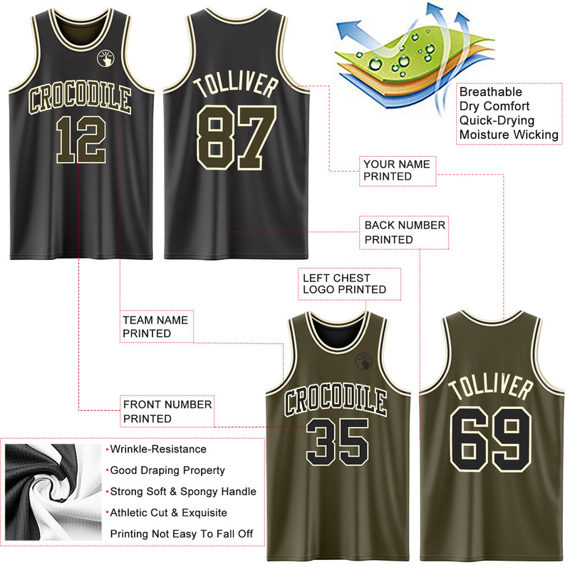 Custom Reversible Black Olive-Cream Double Side Sublimation Basketball Suit Jersey