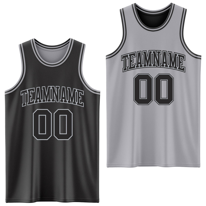 Custom Reversible Black Gray Double Side Sublimation Basketball Suit Jersey